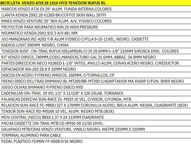 Bicicleta Atix 29 1X10 Hidráulica Colores Venzo