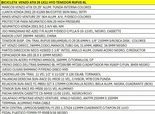 Bicicleta Atix 29 1X11 Hidráulica Colores Venzo