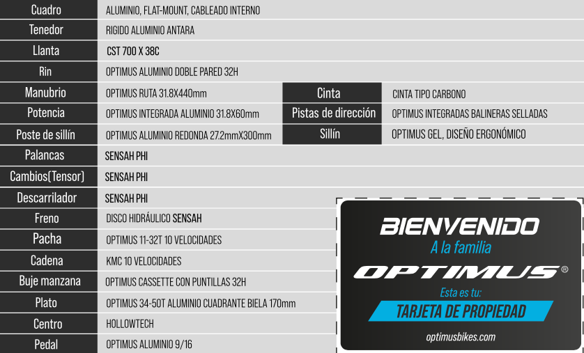 - Cuadro: OPTIMUS ALUMINIO 700C ANTARA GRAVEL
