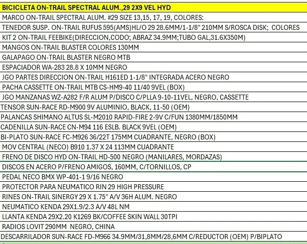- Grupo: Sunrace-Shimano-On Trail