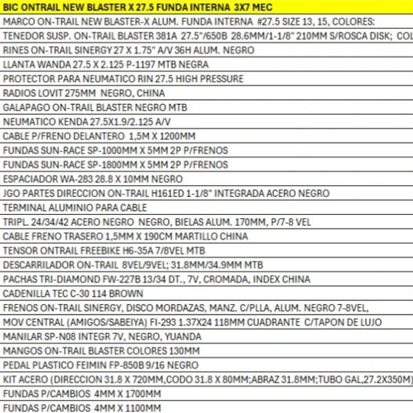 Las componentes On Trail, como la dirección integrada de acero 1-1/8″, ofrecen estabilidad y precisión en manejo. Diseñada para ciclistas que buscan alto rendimiento y comodidad, esta bicicleta redefine la experiencia MTB. Con tecnología avanzada y detalles cuidadosamente seleccionados, la Bicicleta MTB New Blaster 27.5″ se convierte en tu mejor aliada para explorar nuevos senderos.