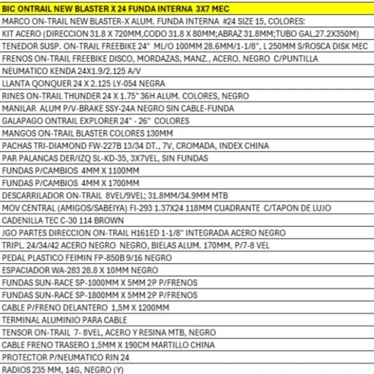 Las componentes On Trail, como la dirección integrada de acero 1-1/8″, ofrecen estabilidad y precisión en manejo. Diseñada para ciclistas que buscan alto rendimiento y comodidad, esta bicicleta redefine la experiencia MTB. Con tecnología avanzada y detalles cuidadosamente seleccionados, la Bicicleta MTB New Blaster 24″ se convierte en tu mejor aliada para explorar nuevos senderos.